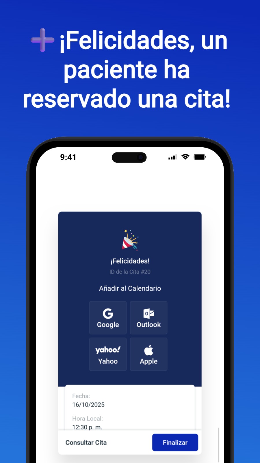 Con un programa fácil de usar, el sistema de citas es sencillo e intuitivo para que puedas gestionar tus citas en línea.